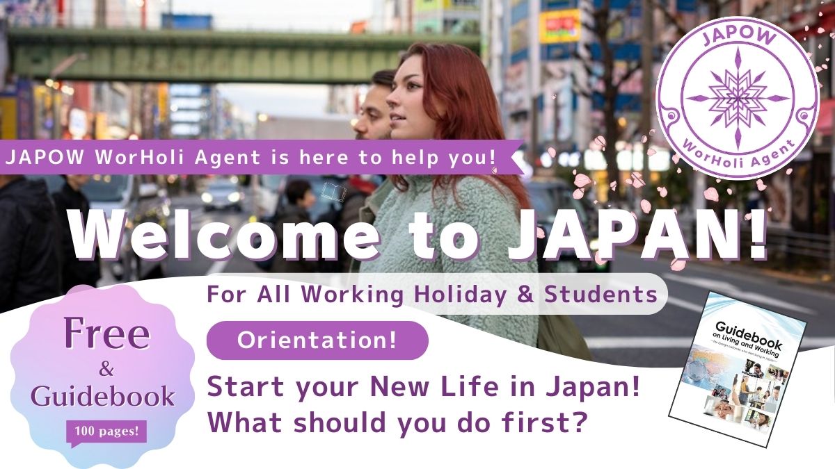 JAPOW WorHoli Agent is dedicated to supporting foreign residents, students, and Working Holiday makers in Yokohama and Tokyo. We make your transition to Japan smooth, fun, and connected! **What We Offer:** **Community & Events:** Join our local tours, cultural meetups, and events to make new friends. **Life Support:** We assist with essential procedures like City Hall registration, opening bank accounts, and setting up phone contracts. **Career & Advice:** Get real, authentic information and job support for your new life in Japan. Let us help you navigate your journey in Japan with confidence! --------------------------------------------------------------- ✨ **Welcome to JAPAN!** ✨ Are you on a Working Holiday Visa or studying in Japan? Start your new life smoothly with JAPOW WorHoli Agent—your friendly bilingual support in Japan! 🌸 We offer one-on-one orientation sessions in Shibuya or Yokohama, helping you with: 💼 City hall procedures (resident registration, My Number, etc.) 🏦 Bank account setup 📱 Mobile phone contracts 🩺 Health insurance 🗣️ Resume & job support 🏠 Housing information 🤝 Community events You’ll also receive a **Free 100-page Guidebook** for all participants! ✨ Make your first steps in Japan easier and more enjoyable! 👉 **Book your free orientation online**: https://book.squareup.com/appointments/knhkobm71godf0 📷 **Follow us for life support tips & international events in Japan!** https://www.instagram.com/japow.lifeinjapan 🌐 **More details on our website**:
