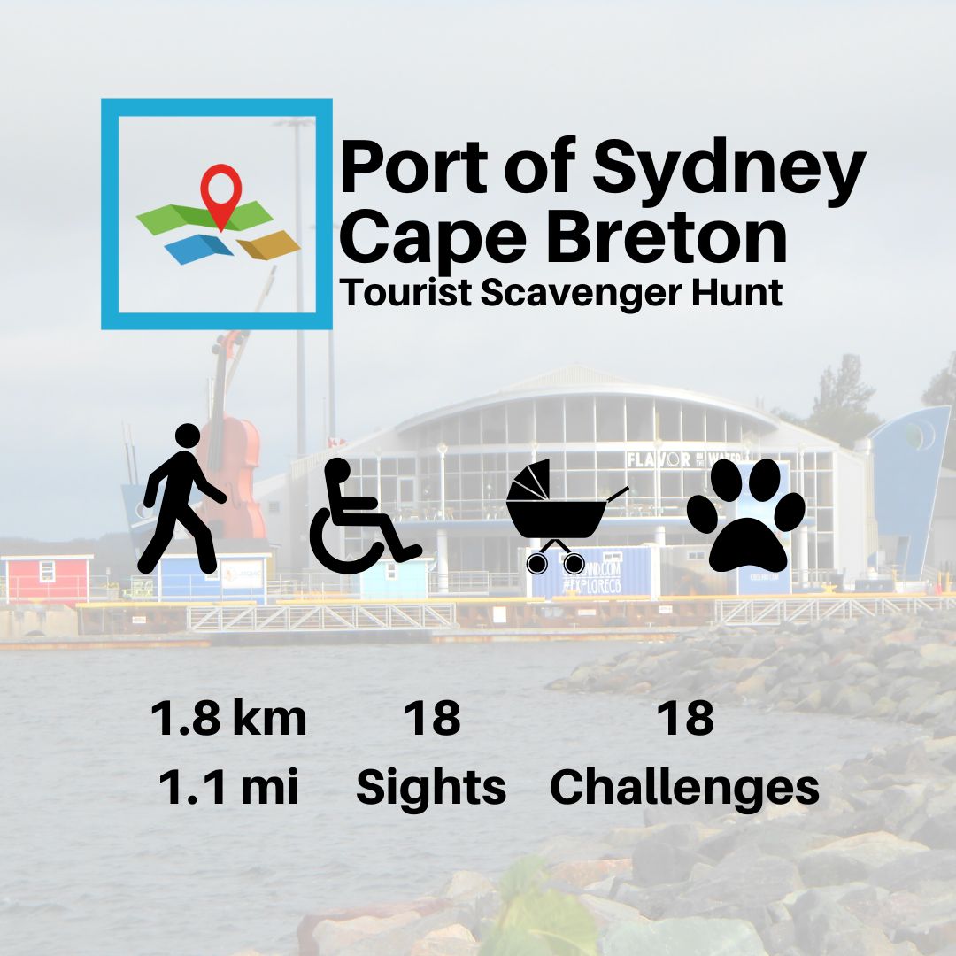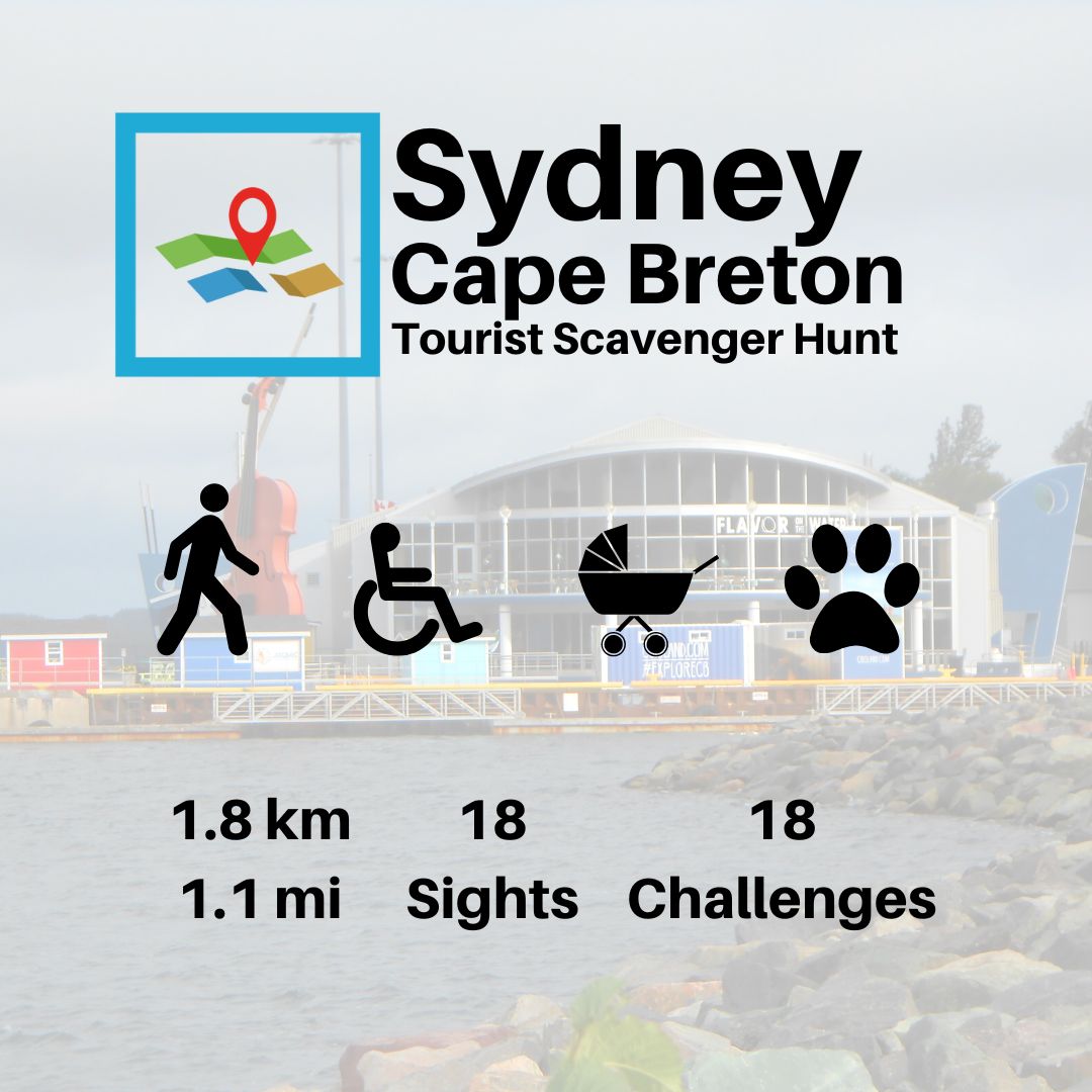 Looking for things to do in Sydney Nova Scotia, now Cape Breton? Try taking part in our scavenger hunt to explore the town like never before! Begin your walk from City Hall down to Sydney Harbour via Kossitt House & Jost House then on to The Highland Arts Theatre . You'll find must see landmarks plus quirky facts about life here that only Sydneysiders know. You'll face puzzles/challenges every step of the way - while discovering fascinating snippets of neighbourhood lore too ... Two routes exist which visit these sites but have differing content: #1 begins at Town Hall; #2 commences at the Cruise Ship Terminal Sydney N.S. Tourism Office Scavenger Hunt Tour takes approximately two hours covering approx 1.8km (.9 miles) distance through various stages filled with interesting tasks... It makes an enjoyable educational outing... See highlights across eighteen venues ... Learn bits of regional heritage .. Test yourself against twelve diverse quizzes.. Fun suitable for young ones upwards.... Stroll leisurely over roughly 1.5 mile route .... Wheelchair friendly everywhere!... Pet lovers welcome wherever they go !... Start anytime convenient using smart phone technology so there isn't any set timetable!.. Take however long it pleases completing quest adventure...\ Purchase just ONE ticket per group size ranging between 1 up to six individuals.