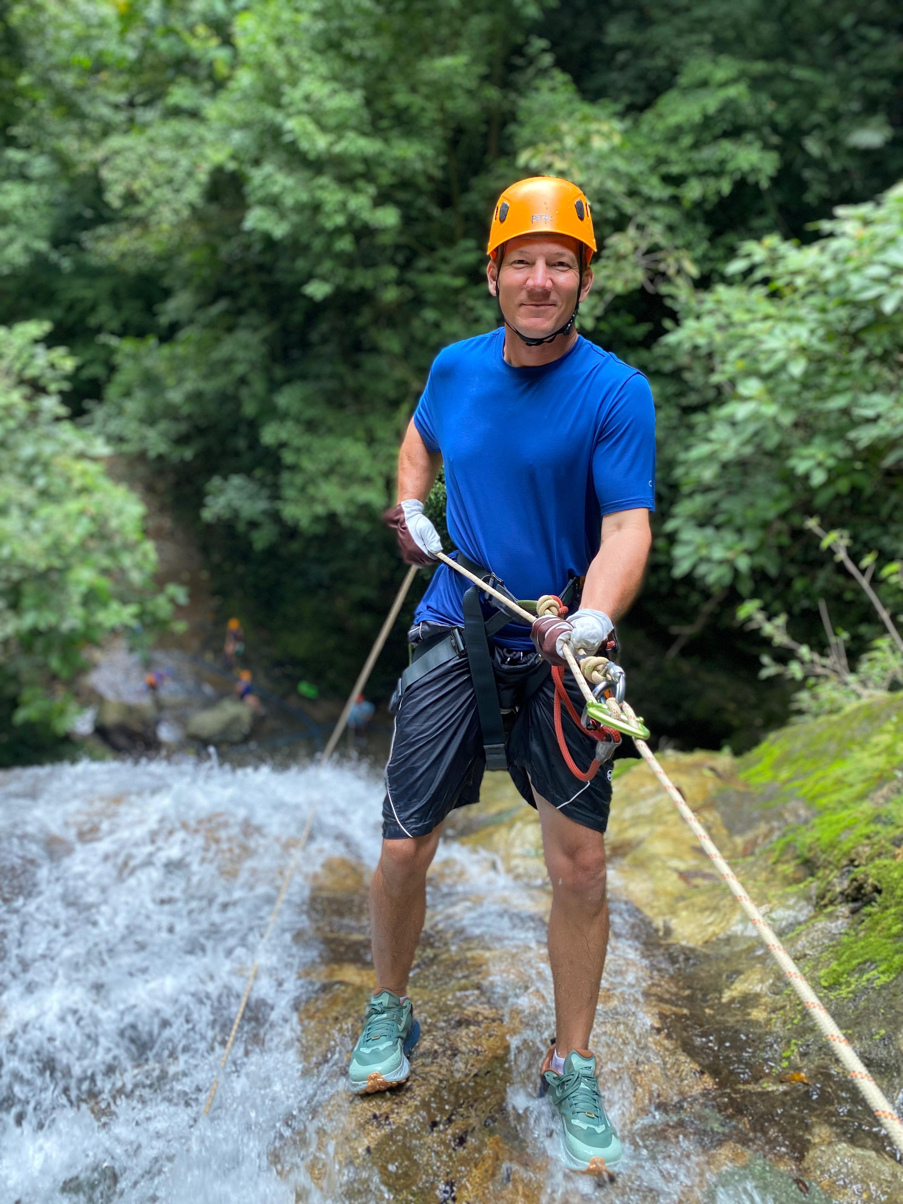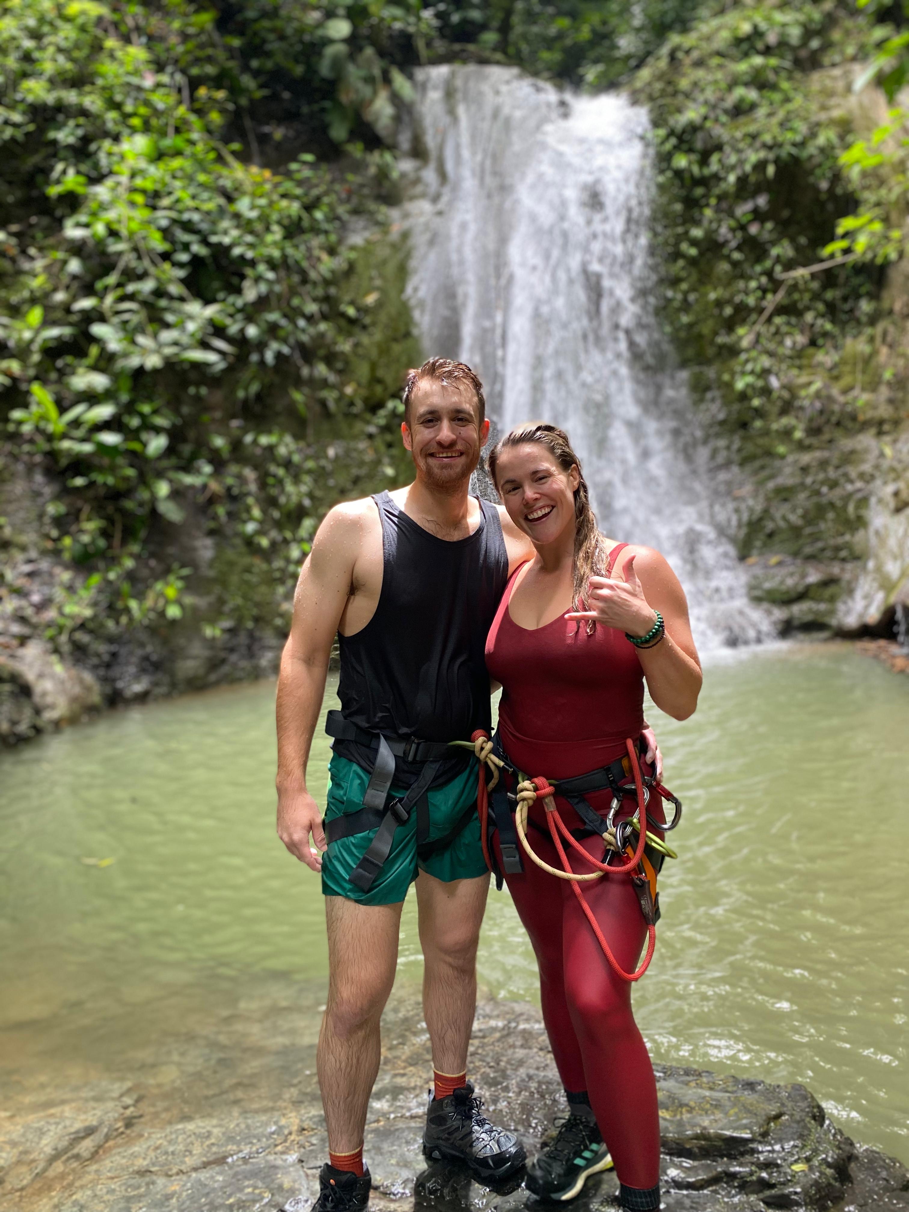 Come and get your fill of adventure. We start a few kilometers up the mountain with a short 20 min hike through the rainforest to our starting point. The first descent starts on the side of a waterfall, so that you get to practice the process without juggling the water – at least until the second waterfall. In total, there are 7 rappelling descents down waterfalls, a handful of smaller cascades that we carefully climb down, and some hiking through the waterway between rappels. Prepare to get wet on this tour – it is guaranteed! Part-way through we’ll pause to enjoy a pre-packed snack en route and enjoy the purely natural surroundings. What to bring: Make sure you bring shoes and clothes that you don’t mind getting wet. If you have a long driving journey home/back to your hotel after the tour, you might also want to bring a dry change of clothes. A drink bottle is also essential. You may want to also bring a camera, however given that we’ll be in the waterways, it might get wet. Something you probably won’t need is sunscreen – we are only out of the rainforest a short time. The remainder of the tour we will be under the cover of the rainforest canopy and so it’s not necessary to bring sunscreen – especially since you’ll be getting wet and sunscreen pollutes waterways (which we really want to avoid). Safety Considerations: The tour is relatively physically demanding and is a relatively high-risk activity, and as a result we have certain restrictions on who can come on the tour. If you have any of the following conditions, unfortunately we cannot bring you on the tour with us: - Recent surgeries (within the last 10 weeks) - Heart problems or CVD - Unmanaged high blood pressure - Unmanaged diabetes - Parkinson’s Disease - Loss of limb (upper extremity), or physical inability to use both arms/hands - Vertigo If you are pregnant, we are also not able to take you with us. We also have a weight limit of 260 pounds (120kg) for the tour. Keep in mind that each descent will require you to slowly lower yourself down the incline – so if you have any condition that restricts the strength in your hands and forearms (or if you doubt that you can control your descent) then we likely won’t be able to take you on the tour. By joining us on the tour (and by signing our waiver), you confirm that you do not have any condition that is listed above or any condition that may preclude you from joining us on the tour.